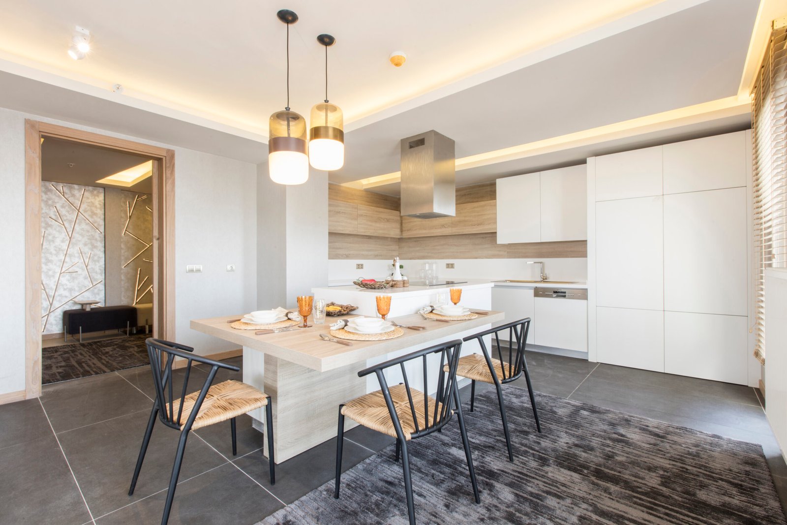 - Mutfak: Ankastre ürünlerle donatılmış kapalı mutfak